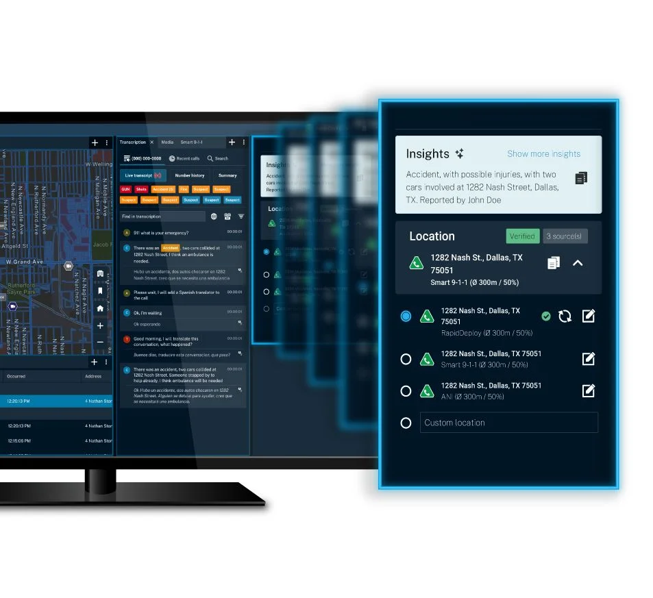 As a call progresses, 9-1-1 telecommunicators automatically see real-time AI call transcription and translation with key information highlighted - reducing cognitive load and speeding response.